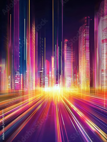 Colorful Light Trails Through a Vibrant Cityscape at Night