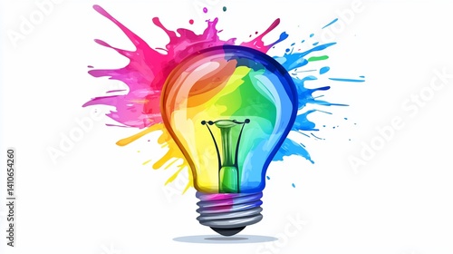 Colorful lightbulb amidst vibrant splashes