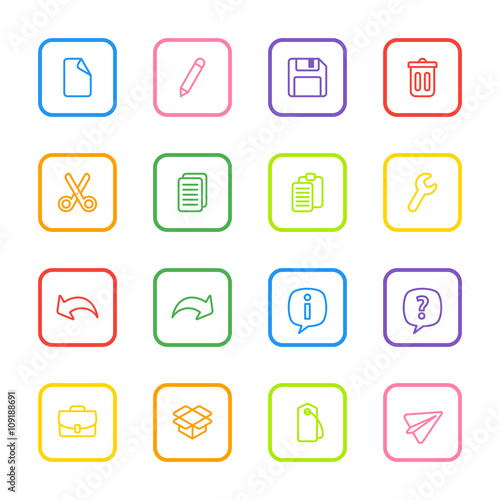 colorful line web icon set with rounded rectangle frame for web design, user interface (UI), infographic and mobile application (apps)