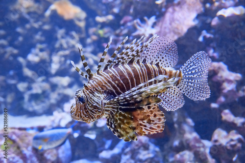 Colorful Lionfish in coral garden, (Pterois volitans).