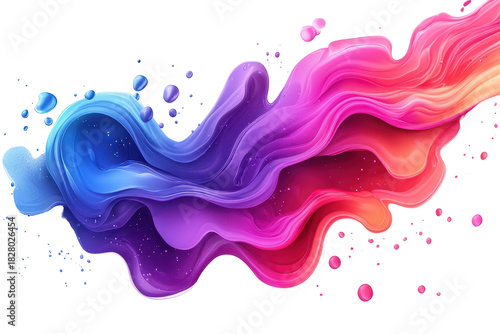 Colorful liquid wave flowing from blue to red on transparent background. Abstract dynamic splash with paint drops for graphic design and decorations