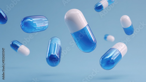 Colorful medicine capsules with modern blurred background