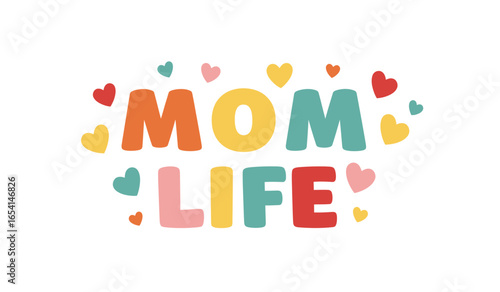 Colorful Mom Life Typography with Hearts on White Background Perfect for Mother s Day and Celebrating Motherhood and the Joys of Raising Children