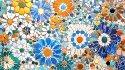 Colorful Mosaic Design with Floral Patterns and Vibrant Details