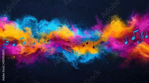 Colorful music notes swirl in vibrant hues, creating a dynamic and artistic musical background.