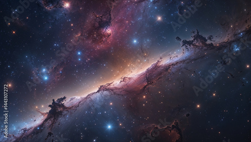 Colorful nebula with bright stars and space dust clouds