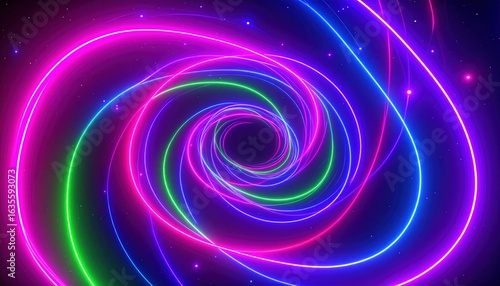Colorful Neon Lights Swirling in a Spiral Pattern Creating an Electrifying Abstract Background