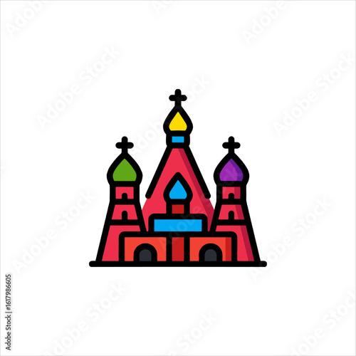 Colorful orthodox church stands tall against a white backdrop, showcasing its unique architecture and religious significance in a simple, yet striking manner.