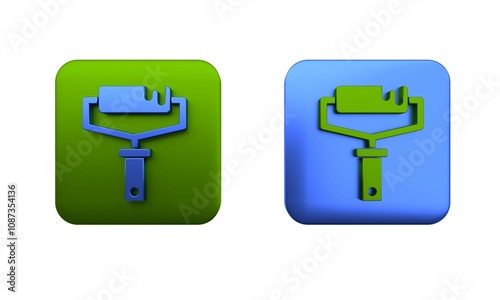 Colorful Paint roller brush icon isolated on white background. Square button. 3D render illustration