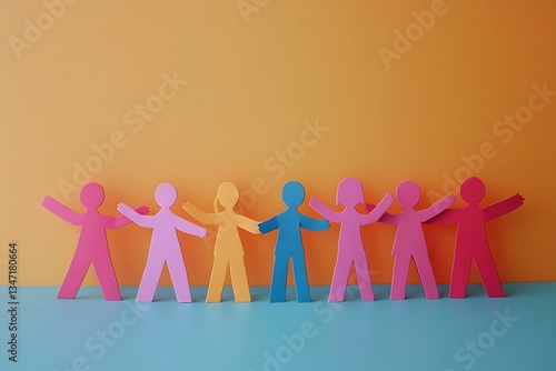 Colorful Paper People Chain Showing Unity