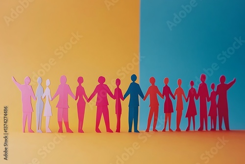 Colorful Paper People Holding Hands Side by Side2
