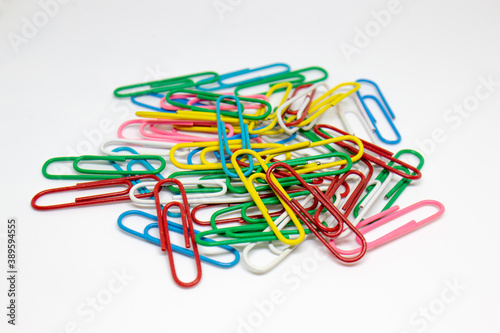 colorful paperclips on a white background