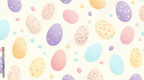"Colorful pastel Easter eggs seamless pattern in shades of pink, blue, yellow, and aqua on light background – perfect spring design for holiday decoration, seasonal crafts, and festive artwork"