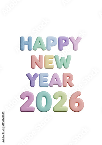 Colorful pastel letters spelling out Happy New Year 2026 on a white background.