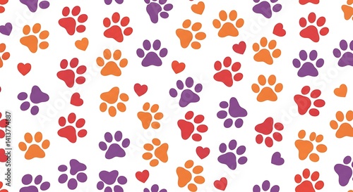 Colorful Paw Prints and Hearts: A Cheerful, Repetitive Pattern
