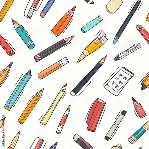 Colorful Pencils and Pens Pattern Design seamless, pattern, background, texture