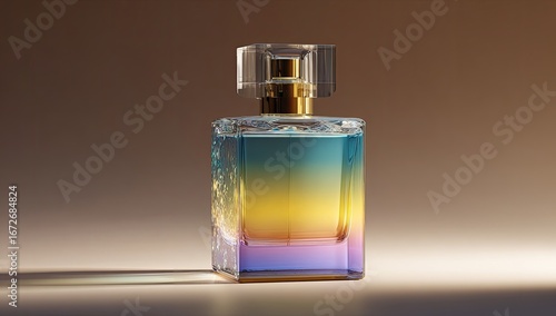 Colorful perfume bottle on gradient background, studio shot, fragrance, beauty