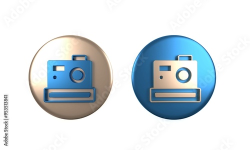 Colorful Photo camera icon isolated on white background. Foto camera. Digital photography. Circle button. 3D render illustration