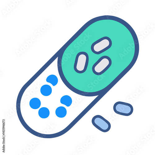 Colorful Pill Capsule Illustration with Contents on Black Background