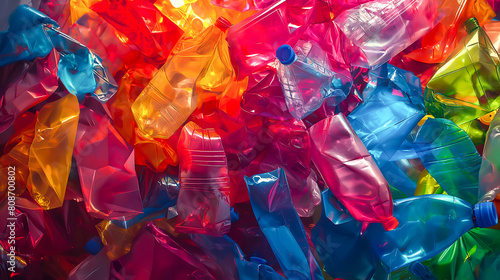 Colorful plastic packs and bottle mixed together. concept environmental pollution and plastic recycling