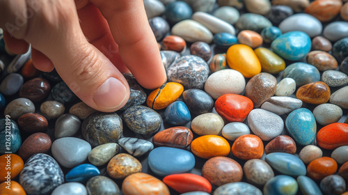 Colorful Polished Stones Hand Picking Natural Texture Background Gems Rocks Image Photo Macro Smooth