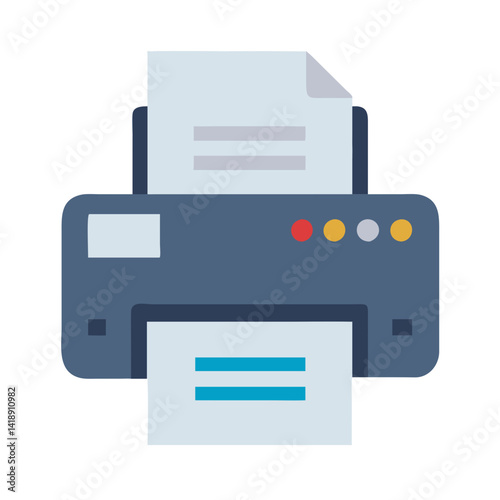 Colorful printer graphic with printed paper outputted