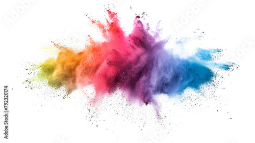 Colorful rainbow holi paint color powder explosion isolated on a transparent background