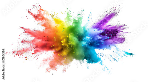 Colorful rainbow powder explosion on a transparent background. Generative AI