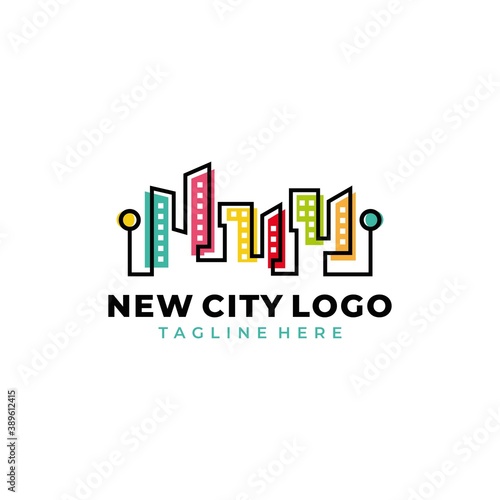 Colorful real estate buildings contour logo template