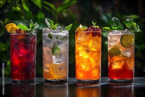 Colorful Refreshing Summer Cocktails with Ice and Citrus Garnish for Party Inspiration