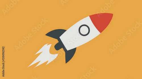 Colorful Rocket Icon Launching Against Bright Orange Background for Creative Projects