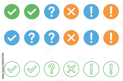 Colorful Round Icons Check Marks, Question Marks, Cross Marks, Exclamation Points