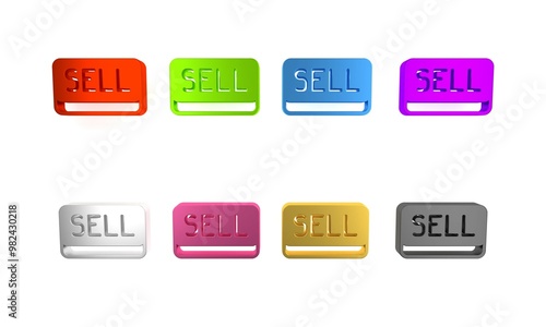 Colorful Sell button icon isolated on white background. Financial and stock investment market concept. Minimalism concept. 3D render illustration
