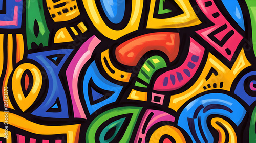 Colorful shapes and bold lines come together, creating an energetic and dynamic abstract design