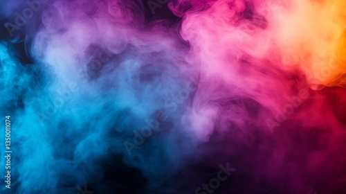 Colorful Smoke Moving with Dramatic Effect in the Dark Studio Space