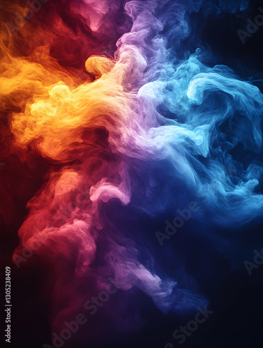 Colorful smoke swirls in dark studio