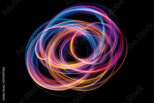 Colorful spiral light painting black background