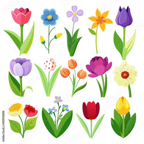 Colorful Spring Flower Collection, Illustration, Isolated on White