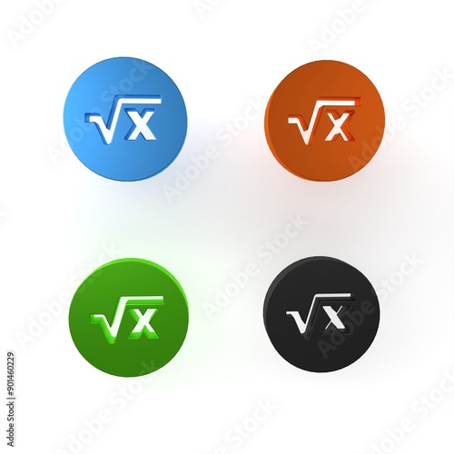 Colorful Square root of x glyph icon isolated on white background. Mathematical expression. Minimalism concept. 3D render illustration