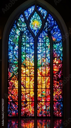 Colorful stained glass window in church