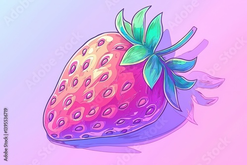 Colorful Strawberry Illustration with Vibrant Shades and Detail