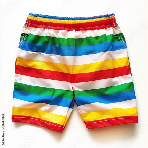 Colorful striped kids' swim trunks