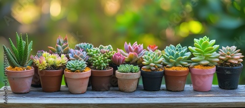 Colorful Succulents in Terracotta Pots on Wooden Surface