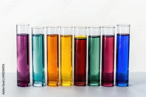Colorful test tubes filled with vibrant liquids create a captivating display of hues showcasing scientific exploration and creativity isolated on transparent background
