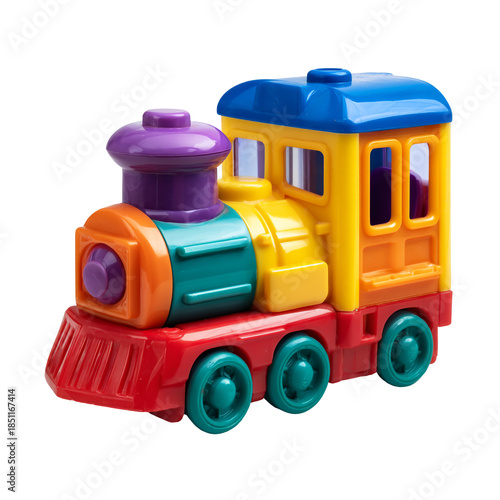 Colorful toy train isolated on transparent background