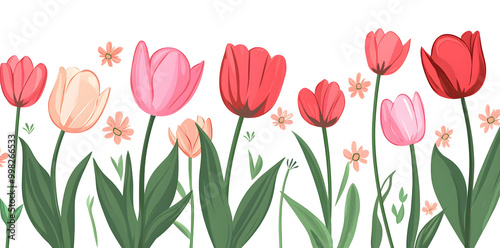 Colorful Tulips Vector Illustration on White Background Design