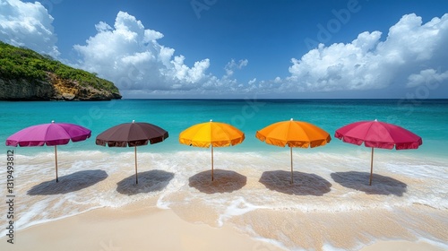 Colorful umbrellas on a tropical beach