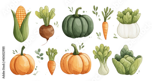 Colorful Vegetable Set on Transparent Background for Design Use