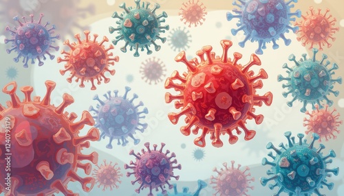 Colorful Viruses Floating in a Microscopic Environment