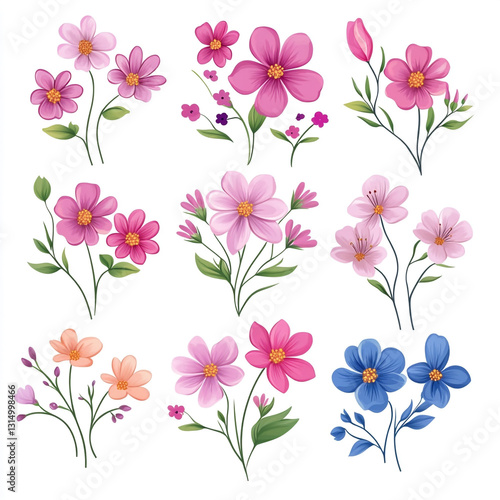 Colorful watercolor floral branch collection